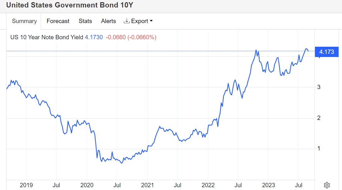 有着“老债王”之称的比尔·格罗斯(Bill Gross)近日表示,美国债务被市场“高估”了,格罗斯预计,10年期美国国债收益率的公允价值约为4.5%,这预示着“全球资产定价之锚”还有不小的上行空间。截至发稿,10年期美国国债收益率位于4.17%-4.20%这一高位附近波动。