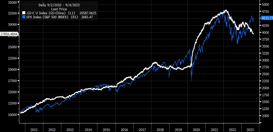 使事情复杂化的是因为几乎整个股市的反弹都是由市盈率倍数扩张驱动的,而不是由于基本面改善,因为标普500指数的市盈率已从3月24日的18.1左右上升到9月1日的20.8左右。如果该指数的市盈率(2023年预期收益为217.26美元)回落至18.1,该指数将回落至3930点。而这又关系到美元问题,因为市盈率的上升主要是由金融环境的放松所推动的,而金融环境的放松与美元的贬值直接相关。因此,如果美元继续走强,这应该会导致进一步的多重收缩。美元走强也可能导致标普500指数成分股整体获利下滑,因受外汇不利因素影响。