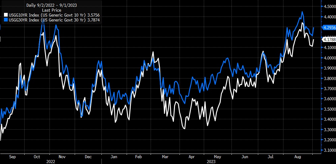 这将表明,10年期和30年期利率美国国债将继续走高,并可能回到8月23日下降前设定的区间的上端,甚至可能突破走高。