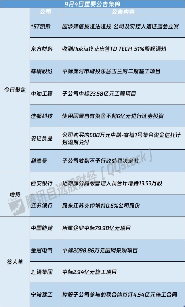 *ST凯撒公告,公司及公司实际控制人陈小兵于9月4日收到中国证监会下发的《立案告知书》,因涉嫌信息披露违法违规,根据《中华人民共和国证券法》《中华人民共和国行政处罚法》等法律法规,中国证监会决定对公司及实际控制人立案。目前,公司各项生产经营活动正常有序开展,本次立案不会对公司生产、经营和管理造成重大影响。
