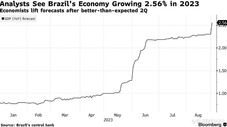 强劲的服务业和稳健的劳动力市场帮助巴西GDP在4月至6月期间增长0.9%。在此之前,由于丰收推动了经济扩张,巴西今年第一季度GDP增长超出预期。美国银行等主要银行现在押注2023年的经济增长率将达到或接近3%,是大多数分析师在1月份预期的三倍多。
