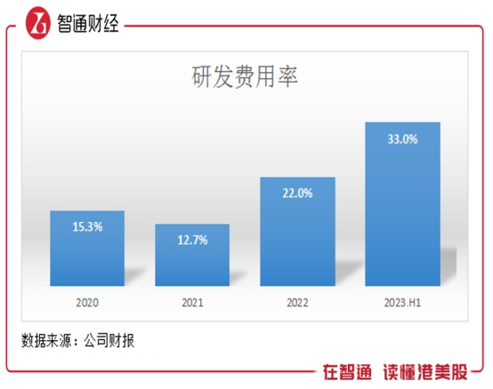 2023年上半年,该公司研发费用率提升至33%,远高于同行水平。持续投入研发也为该公司打造了坚实的竞争壁垒,收获了一系列行业领先的研发成果,比如中国首个自研全铝车身架构、中国首个全栈自研智能底盘域控制器ICC、全球首款一体式壳体同轴感应电驱系统以及全球首个融合高性能激光雷达的智驾感知系统Aquila等。