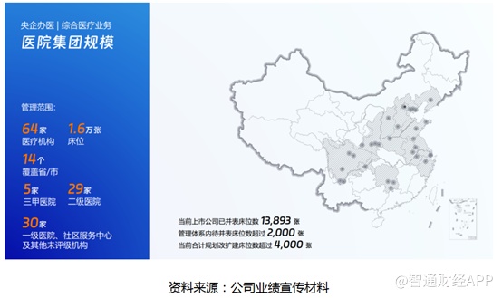 截至6月30日,环球医疗管理64家医疗机构,1.6万床位,覆盖14个省/市,5家三甲医院,29家二级医院,30家一级医院、社区服务中心及其他未评级机构。