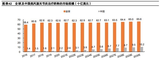 据弗若斯特沙利文报告,2020年全球RA患者发病人数约3980万人(中国约600万人),预计到2030年全球RA患者将达到4500万人(中国640万人),存在着尚未满足的治疗需求和广阔的市场空间。此外,目前类风湿关节炎无法完全治愈,仅能通过治疗进行缓解,并需长期治疗,相关市场将继续增长。
