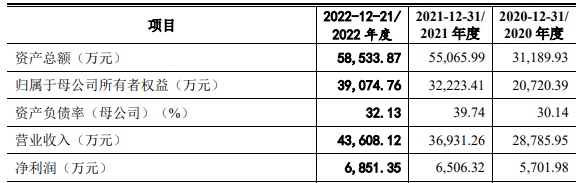 财务方面,2020年、2021年及2022年,合众伟奇实现营业收入约为2.88亿元、3.69亿元及4.36亿元;同期,净利润约为5701.98万元、6506.32万元及6851.35万元。