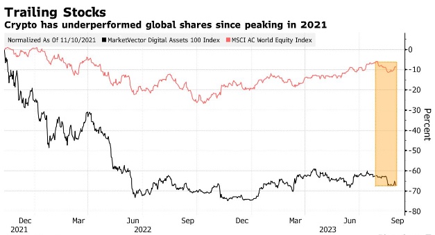 数字资产在2023年从去年的大幅抛售中部分反弹,但仍远低于历史高点。例如,比特币自今年年初以来上涨了55%,达到25700美元,但仍比2021年的纪录低40000多美元。