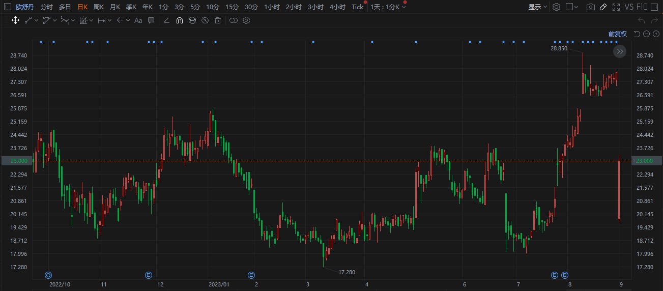 智通财经APP获悉,9月5日,港股美妆上市公司欧舒丹(00973)复牌即暴跌超28%,截至收盘,跌幅收窄至17.27%,报23港元。欧舒丹股价大跌的原因,主要是公司控股股东终止了此前的全面要约收购的计划。9月4日晚,欧舒丹公布,公司于2023年9月3日接获控股股东通知,该股东已决定不会进行可能进行交易。
