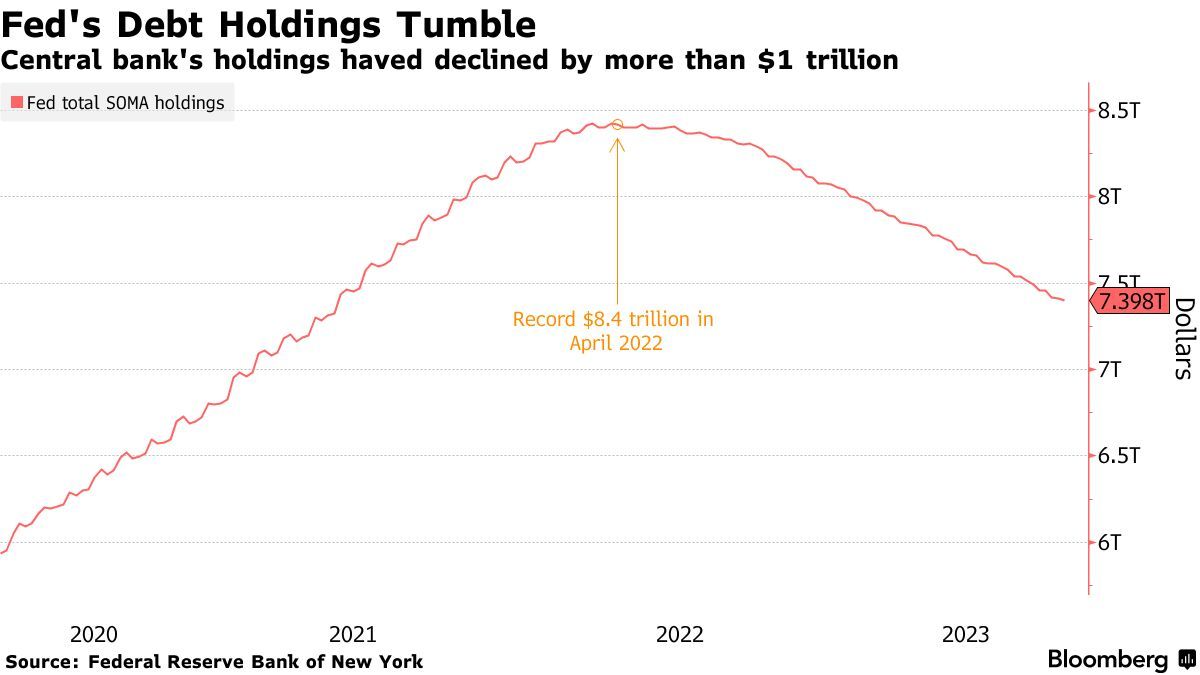 来自加拿大皇家银行资本市场(RBC Capital Markets)的美国利率策略主管布莱克•格温(Blake Gwinn)表示:“迄今为止,美联储的债务缩减进行得相当顺利。”“但是,我们还没有看到QT对金融市场带来的重大影响。”QT在这里指的是量化紧缩,即美联储缩减资产负债表的专用术语。
