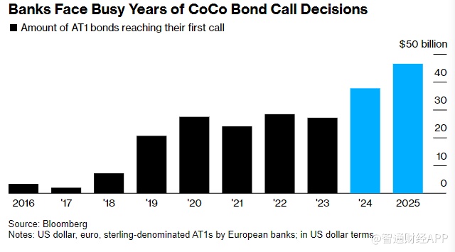 智通财经APP获悉,在从瑞信AT1债券减记危机中反弹后,欧洲银行风险最高的债券市场将再次受到考验,因为未来两年将有840亿美元的债券面临赎回。