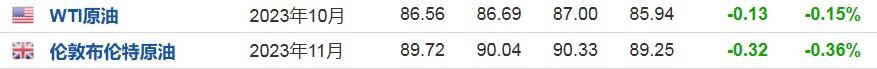 3. 截至发稿,WTI原油跌0.15%,报86.56美元/桶。布伦特原油跌0.36%,报89.72美元/桶。