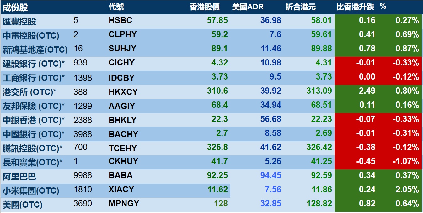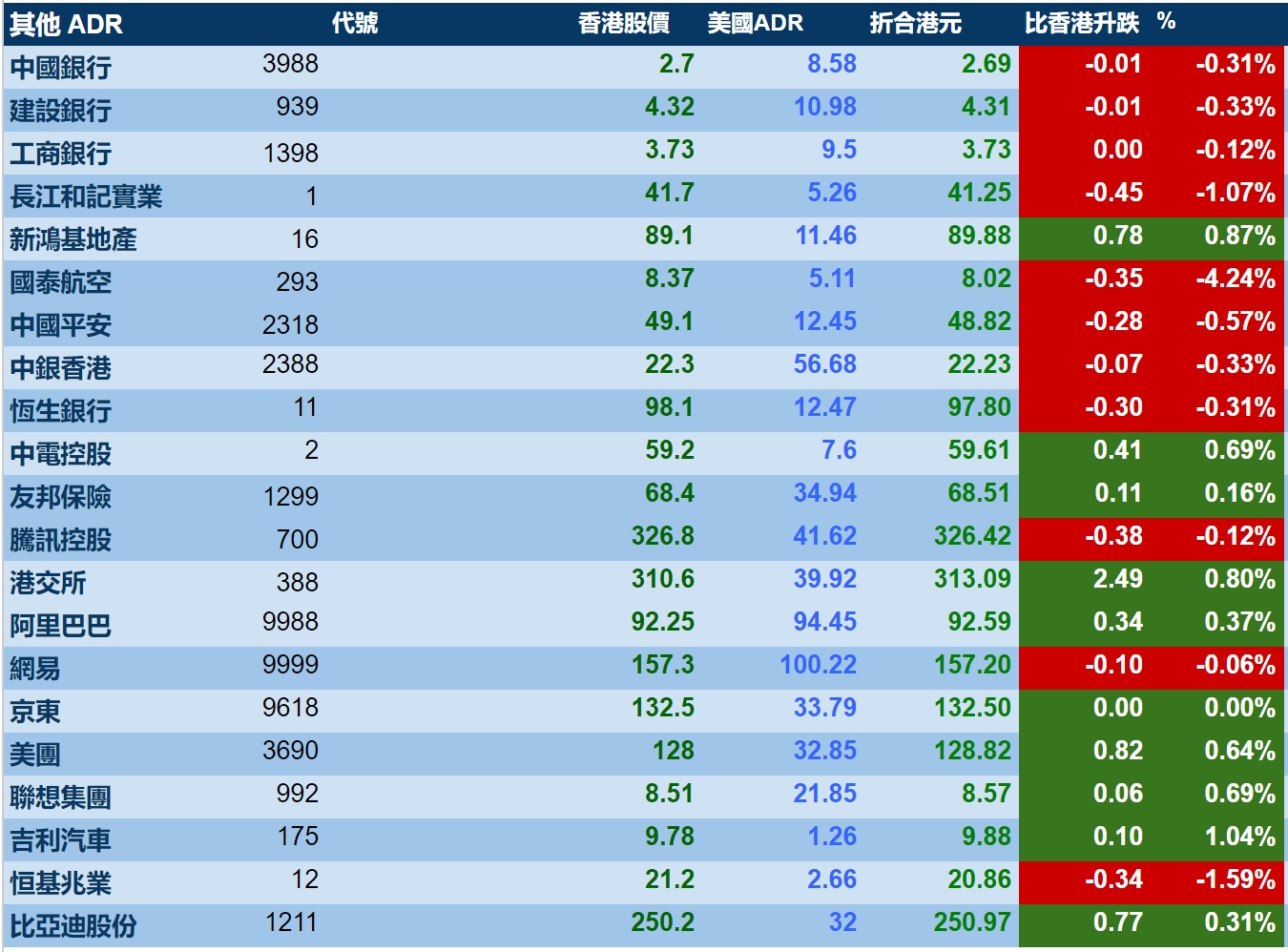智通财经APP获悉,周三美股三大指数集体下跌,港股ADR指数上涨,按比例计算,收报18492点,较香港收市涨42.87点或0.23%。
