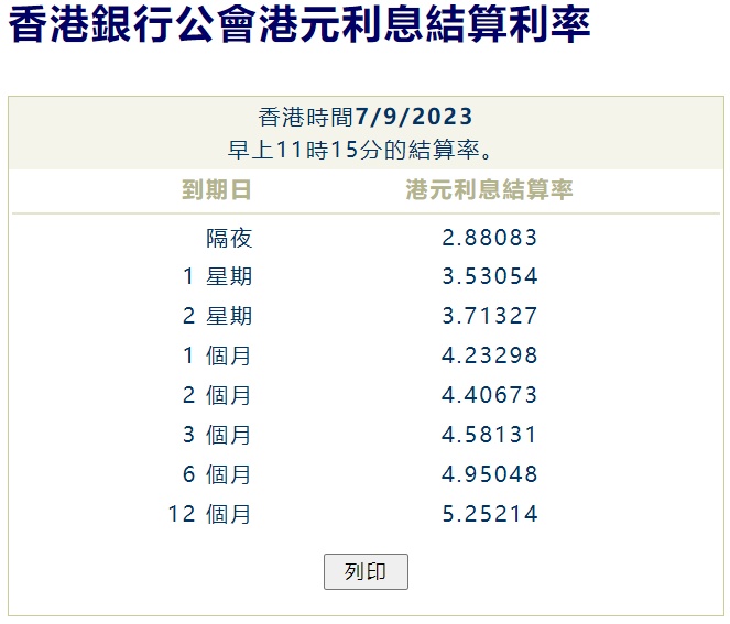 智通财经APP获悉,9月7日,港元拆息个别发展,但主要利率趋升,其中,隔夜息中止两连跌,回升至2.88083%,与楼按相关的一个月拆息连升三天,报4.23298%,创两周新高。