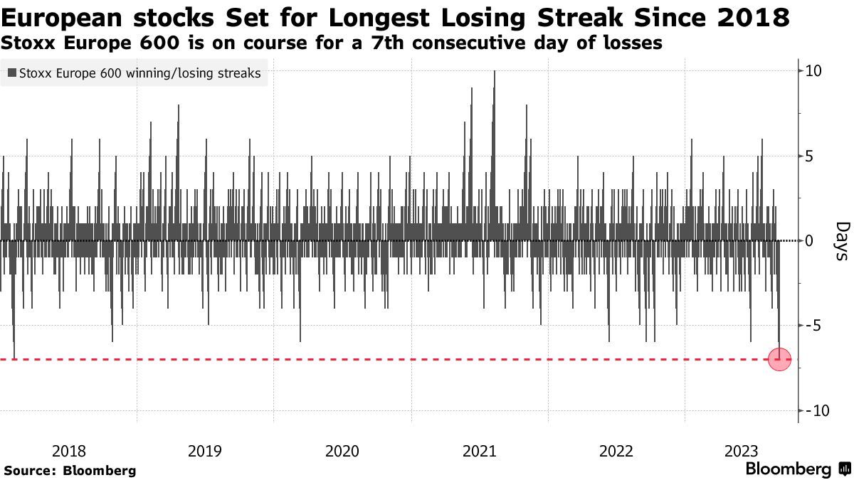 智通财经APP获悉,欧洲股市连续第七个交易日下跌,有望创下2018年以来的最长连跌纪录。截至发稿,泛欧斯托克600指数跌0.21%,科技和基础资源板块跌幅最大。