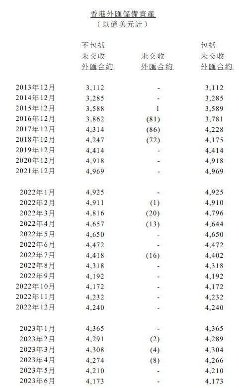 智通财经APP获悉,9月7日,香港金管局公布,香港于2023年8月底的官方外汇储备资产为4184亿美元(2023年7月底为4216亿美元)。连同未交收外汇合约在内,香港于2023年8月底的外汇储备资产为4180亿美元(2023年7月底为4216亿美元)。4184亿美元的外汇储备资产总额,相当于香港流通货币5倍多,或港元货币供应M3约40%。
