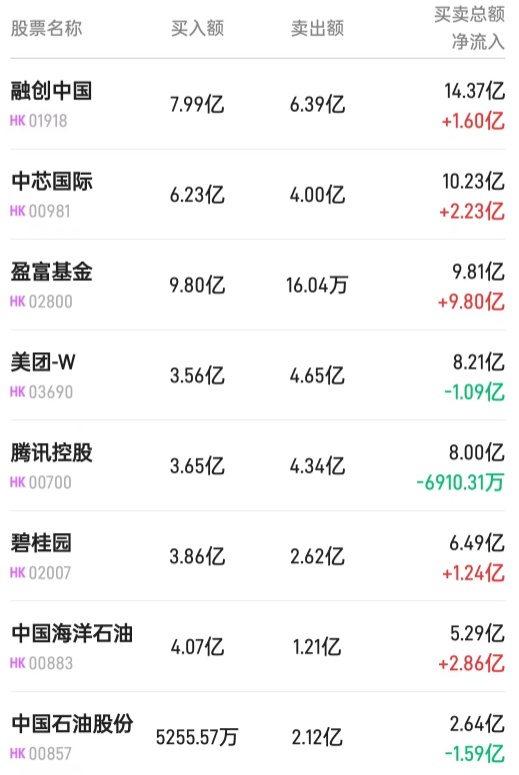 中芯国际(00981)获净买入9802万港元。消息面上,天风国际分析师郭明錤在社交媒体上表示,排除潜在非商业风险后、受惠于Mate60Pro的市场需求及影响力,华为手机今年出货量将同比增长65%至3800万部。展望明年出货量至少达到6000万部。华为Mate60Pro需求强劲,他相信华为供应链中,受惠中国厂商众多,例如在半导体方面,从事晶圆代工的中芯国际等。