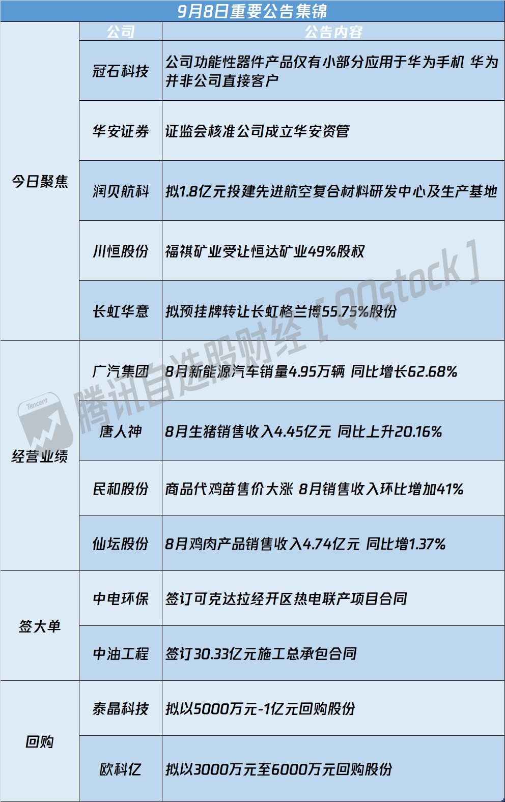 1、广汽集团:8月新能源汽车销量4.95万辆 同比增长62.68%