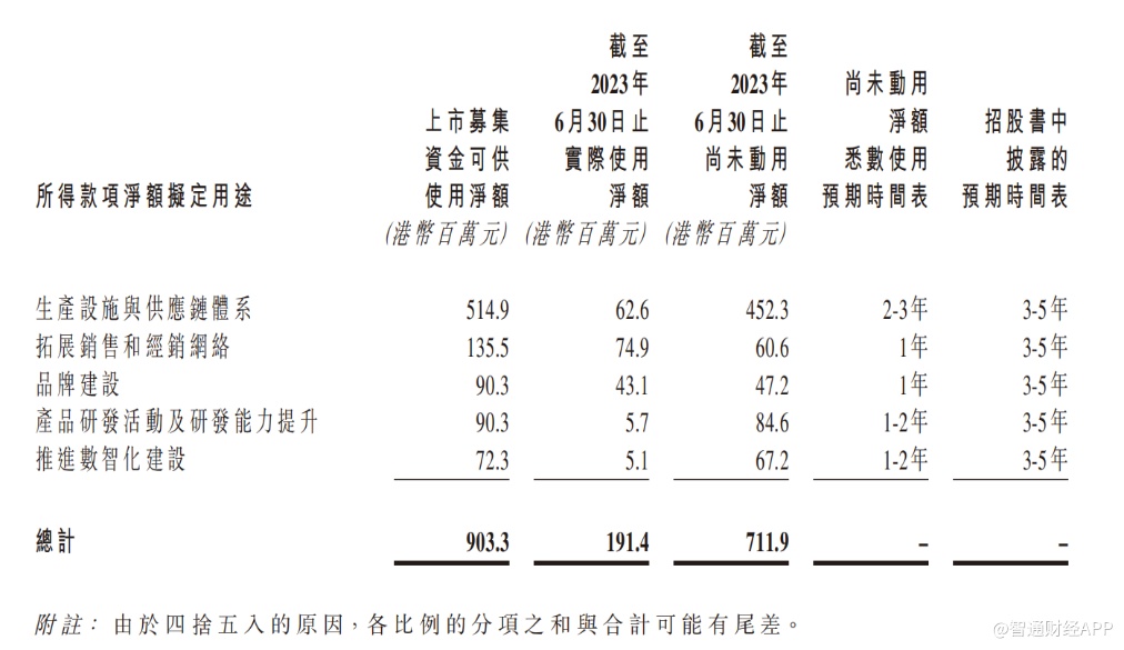 从卫龙的过往费用投入结构看,公司对营销的重视程度要远超研发。公司在上市时募集资金净额9.03亿港元,其中用于拓展销售和经销网络、品牌建设的资金共计约2.26亿元,截至2023年上半年,实际使用1.18亿元。上市募集用于产品研发研发活动及研发能力提升的资金净额为0.9亿元,截至上半年,实际使用净额仅为570万港元。