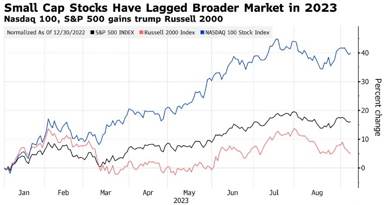 这一差异突显了英伟达(NVDA.US)、Meta Platforms(META.US)和特斯拉(TSLA.US)等公司推动了股市的大部分涨幅,从而在股市上拉开了巨大的鸿沟。罗素2000指数中超过一半的成份股今年下跌,使该指数仅上涨5%,远低于标普500指数16%的涨幅。