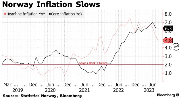 智通财经APP获悉,挪威上月通胀意外放缓,表明挪威央行可能在下周加息25个基点后结束货币紧缩政策。根据挪威国家统计局周一发布的一份声明,8月份总体通胀同比降至4.8%,创17个月新低,核心价格涨幅放缓至6.3%。这两项指标都低于对10位分析师的调查和挪威央行的预测,预期分别为6.1%和6.4%。