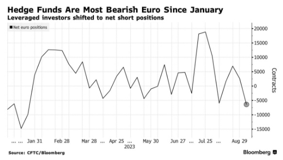 今年夏季,市场对欧元的情绪持续恶化,目前欧元已连续8周下跌,从7月份的峰值下跌了逾4%。对冲基金在8月份抛售了近90%的欧元净多头头寸。