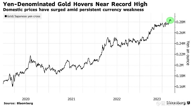 智通财经APP获悉,由于日元疲软似乎将持续到明年,以日元计价的黄金前景从未像现在这样乐观。今年以来,持有日元计价黄金的日本投资者已经获得了可观的回报,日本国内黄金价格目前徘徊在每克10000日元的历史高位附近,自1月份以来上涨了约18%。