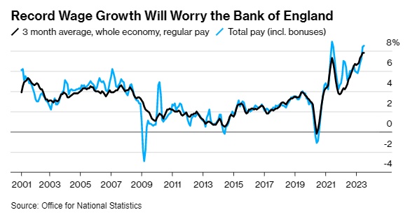 智通财经APP获悉,在截至7月的三个月里,英国工资增速继续保持在创记录高位,这一迹象表明粘性通胀依然存在,这将给英国央行带来再次加息的压力。英国国家统计局周二表示,不包括红利在内的平均工资同比增长7.8%,继续维持在自2001年该数据开始统计以来的最高水平,同时也超出了经济学家的预期。包括红利的平均工资意外增长至8.5%,创下除疫情期间以外的最高纪录。