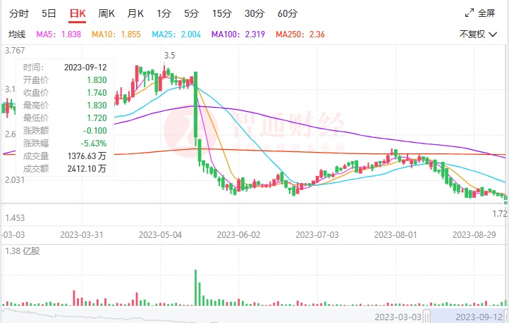智通财经APP注意到,9月12日开盘,高鑫零售股价低开低走,盘中一度触及1.72港元,创下年内新低。截至当天收盘,高鑫零售跌幅为5.43%,报1.74港元。