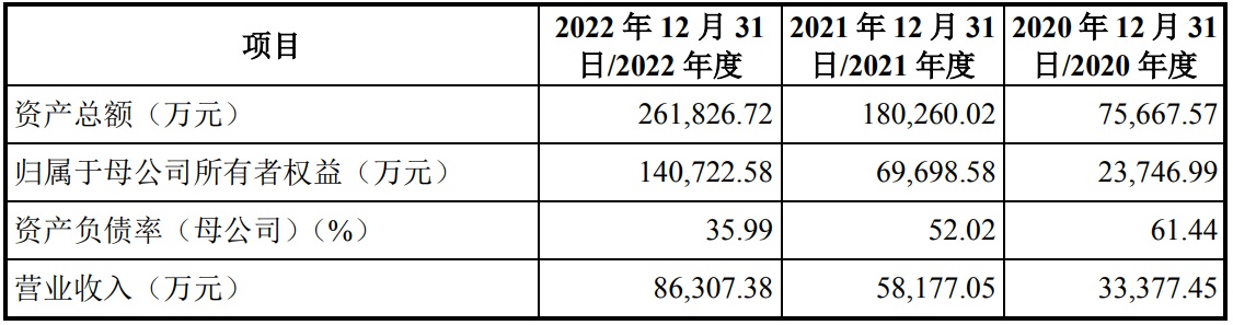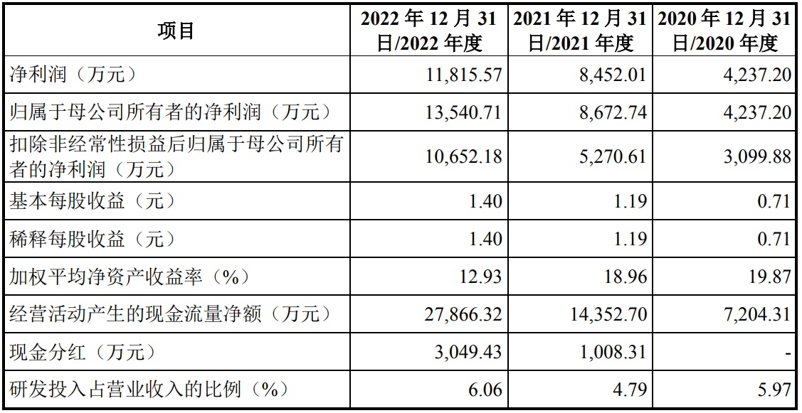 财务方面,于2020年、2021年、2022年,益诺思实现营业收入分别为3.34亿元、5.82亿元、8.63亿元;同期,公司实现净利润分别为4237万元、8452.01万元、1.18亿元。