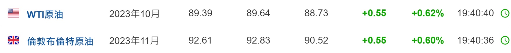 3. 截至发稿,WTI原油涨0.62%,报89.39美元/桶。布伦特原油涨0.60%,报92.61美元/桶。