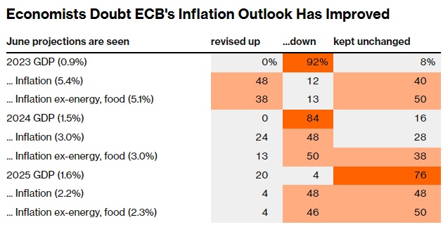 彭博经济学家David Powell和Maeva Cousin表示:“虽然我们的基本预测是加息,但这并不是一个强有力的预测。经济放缓、核心通胀路径的转变、美国加息周期可能结束等仍有可能说服欧洲央行管理委员会暂停加息并进行评估。”