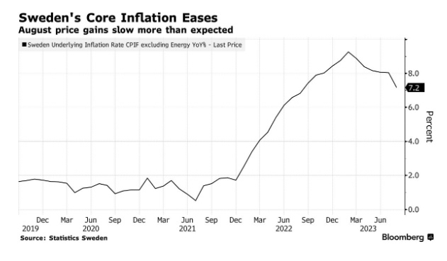 智通财经APP获悉,最新数据显示,瑞典8月份核心通胀率降幅大于预期,这让瑞典央行松了一口气,因为该国央行正准备决定遏制物价上涨的下一步举措。瑞典统计局表示,剔除能源和利率变化的价格较上年同期上涨了7.2%,低于经济学家预期的7.4%。该数据将在下周的利率制定会议之前向瑞典央行提供一个关键数据点。