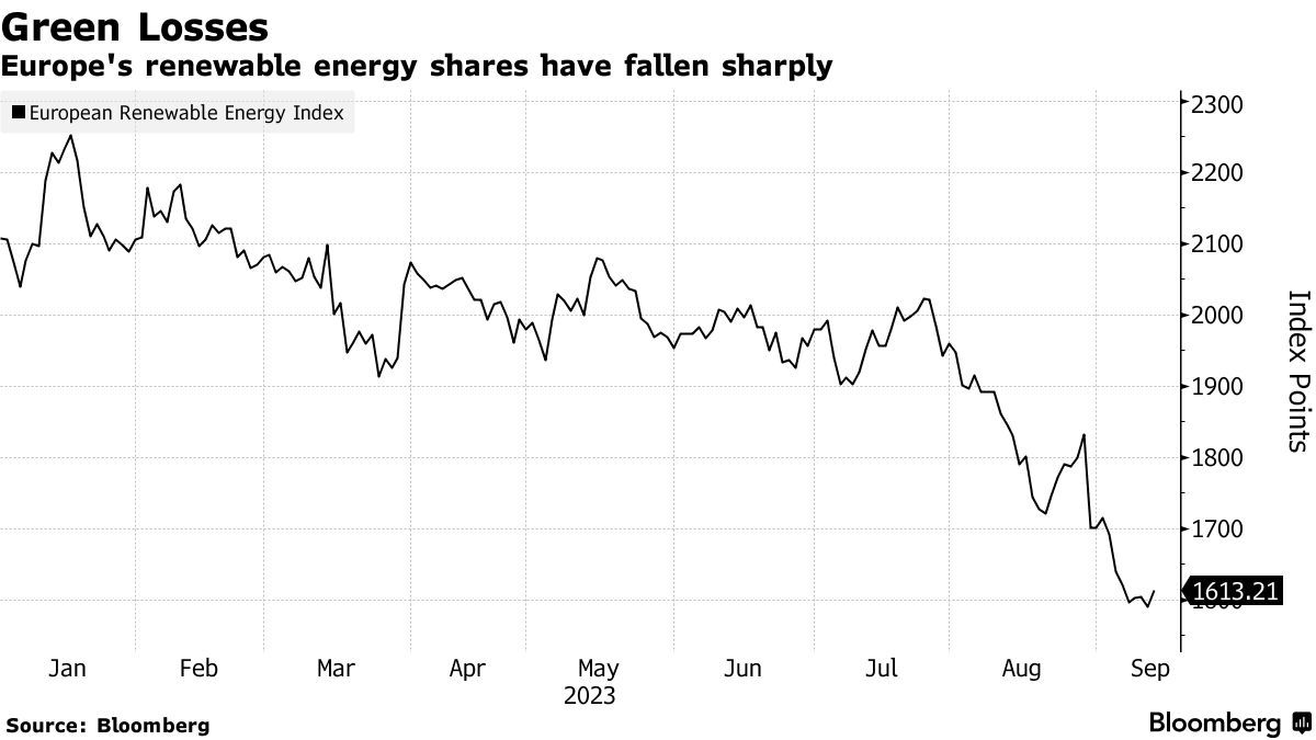 最近几周,可再生能源市场价值遭受重创,尽管科学家报告称全球气温创下历史新高,罕见的火灾和洪水肆虐世界各国,但可再生能源仍未受到资本市场和一些国家重视。一些政府此前提出的承诺出现动摇迹象,加上供应链问题打击了风能和太阳能等可再生能源供应商。
