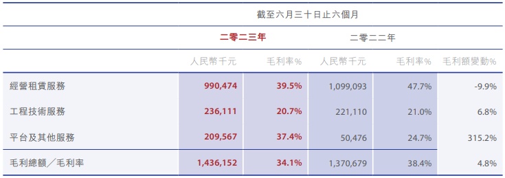 据了解,报告期内宏信建发的盈利能力出现波动,这主要是因为其核心业务经营租赁服务的毛利率显著倒退。数据显示,23H1期间,受到新型模架系统及新型支护系统相关材料的市场租金价格波动的影响,宏信建发的经营租赁服务的毛利率同比减少了8.2个pct至39.5%。