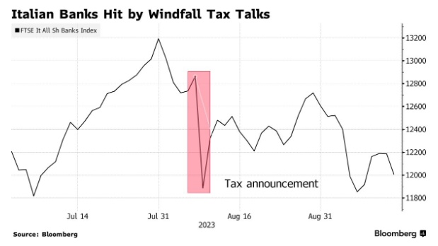据了解,意大利政府在指责银行业将高利率带来的好处传递给客户的速度太慢之后,对银行赚取的额外利润征收了这项税。根据2021年的基准,该税适用于银行额外利润的40%,且不会超过银行资产的0.1%。据分析称,意大利最大的两家银行意大利联合圣保罗银行和意大利联合信贷银行将面临新税收带来的最大损失。
