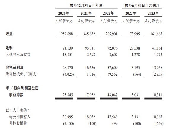 于2020年、2021年以及2022年以及2022年、2023年截至6月30日止六个月,耐看娱乐收益分别为约2.60亿元、3.46亿元、2.06亿元、7399.5万元、1.62亿元人民币;同期,年/期内利润及全面收益总额分别为2584.5万元、1795,2万元、4804.7万元、303.1万元、1031.1万元人民币。