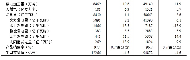 8月份,工业企业产品销售率为97.4%,同比下降0.7个百分点;工业企业实现出口交货值12266亿元,同比名义下降4.5%。