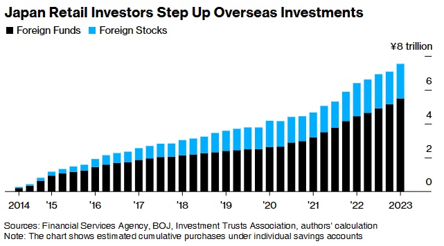 智通财经APP获悉,由于日本政府计划永久取消对日本个人储蓄账户(NISA)的股息和交易利润征税,一直在向海外股票和基金投入大量资金的日本散户投资者预计将在2024年加大海外投资力度,这一过程将成为日元长期走软的催化剂。