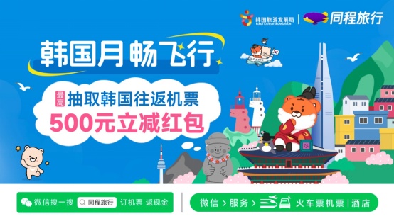 目前,同程旅行与韩国旅游发展局正式推出“韩国月畅飞行”专题活动。双方将为用户精选多批次的韩国旅游特惠航线,用户参与专题活动,还可以抽取韩国往返机票最高500元立减红包。该活动将为期一个月,以满足用户在“十一黄金周”的赴韩旅行需求。