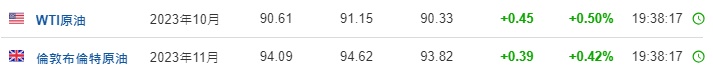 3. 截至发稿,WTI原油涨0.50%,报90.61美元/桶。布伦特原油涨0.42%,报94.09美元/桶。
