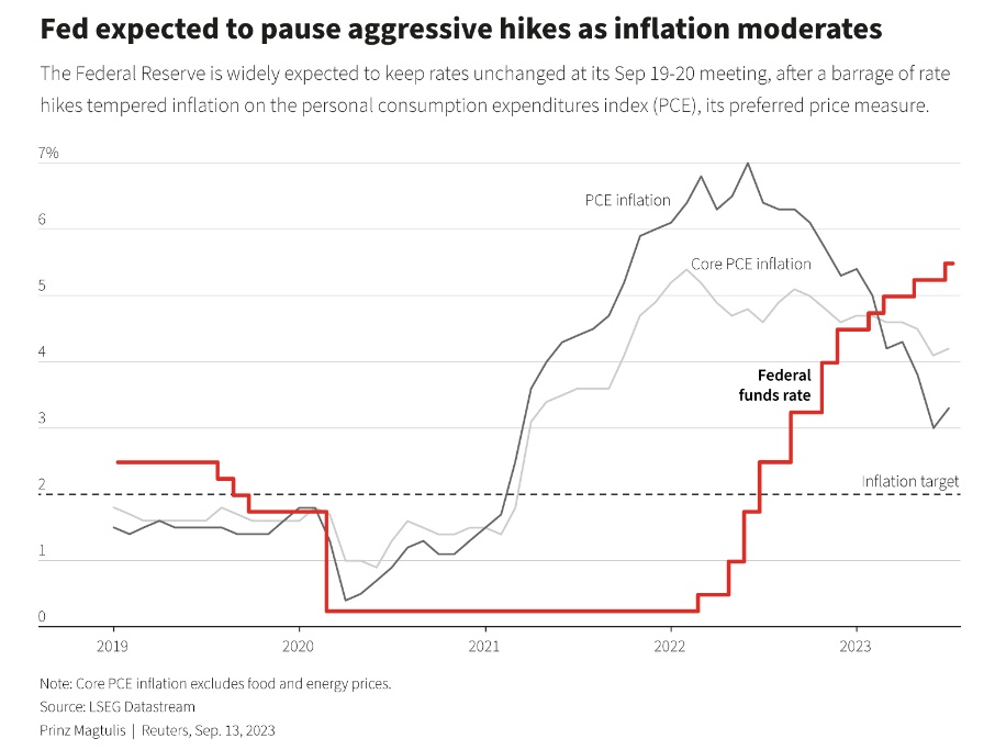 智通财经APP了解到,自2022年3月以来,美联储已累计加息525个基点,市场普遍预计美联储将在本周维持利率不变。并且,许多投资者认为,政策制定者不太可能进一步加息,从而结束几十年来最激进的货币政策紧缩周期。