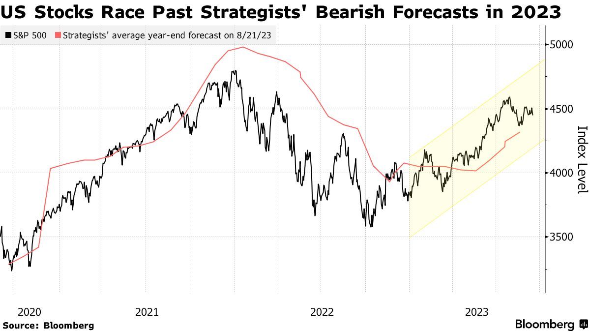在利率即将见顶和经济增长好于预期的押注推动下,美股在2023年的强势反弹打破了市场在年初的悲观预期,并让许多市场人士改变了对美股的看法。不过,Michael Wilson一直维持对美股的看跌论调。他在上周曾警告称,投资者应关注防御型股票、工业和能源股的“后周期投资组合”。他认为,市场正处于后周期的背景下,这是美联储预计将暂停或扭转其鹰派政策立场的时候,而把更保守作为考虑因素的股票——如拥有较高水平现金和较低水平债务的股票——已经开始跑赢大盘。他重申了自己的观点,即股市尚未反映出经济衰退的风险。
