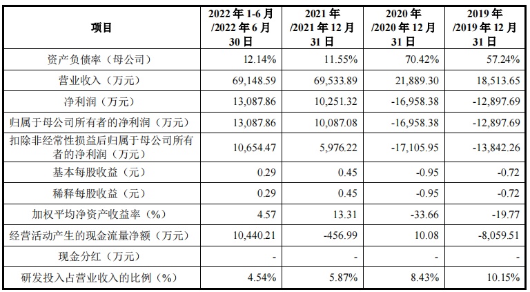 财务方面,2019年、2020年、2021年、2022年1-6月,金力股份实现营业收入约为1.85亿元、2.19亿元、6.95亿元、6.91亿元;同期,净利润约为-1.29亿元、-1.70亿元、1.03亿元、1.31亿元。