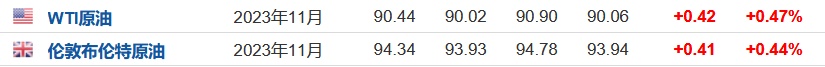 3. 截至发稿,WTI原油涨0.47%,报90.44美元/桶。布伦特原油涨0.44%,报94.34美元/桶。