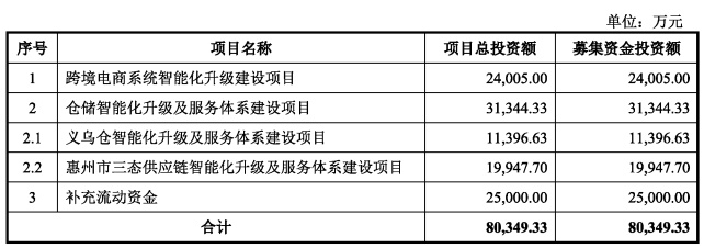 据了解,三态股份募集资金扣除发行费用后拟用于以下列项目: