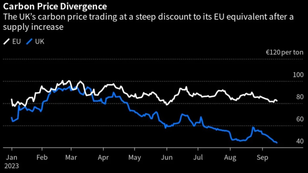 给碳排放定价的本意是为了遏制污染。工厂和化石燃料发电厂每排放一吨碳,都需要购买许可证。这些和燃料价格一起,是发电成本的关键组成部分。英国政府的能源安全和净零排放部(Department for Energy Security and Net Zero)在一份文件中详细介绍了其6月份决定发放额外许可证的决定,该部门表示,此举是为了让市场参与者有“时间适应”,并“平稳”过渡到净零排放。