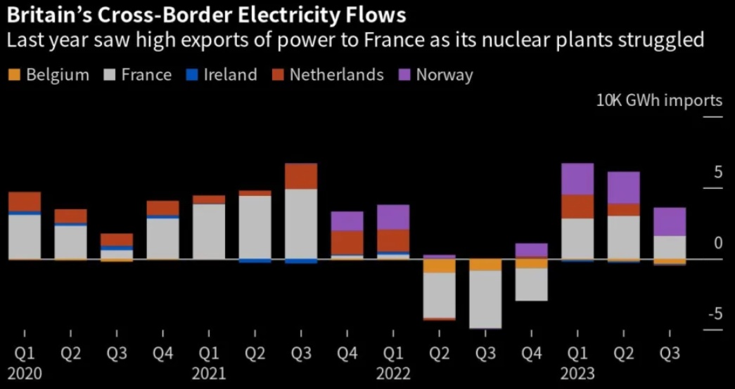 智通财经获悉,因为碳价格暴跌使天然气和煤电厂的发电成本降低,英国今年冬天预计将增加对欧洲大陆的电力销售。英国的成本可能会保持在较低水平,从而推动更多的电能通过海底电缆出口到法国、荷兰和比利时。标普全球大宗商品洞察称,尽管英国总体上仍将是一个能源买家,但第一季对该国的净进口量料略低于4太瓦时,或较上年同期减少一半,但实际出口数据并未公布。