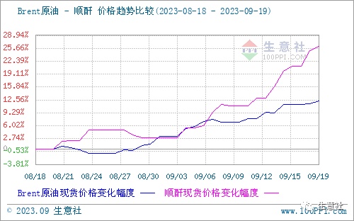 上游方面,加氢苯市场继续跟随纯苯走势上行为主,供应方面变化不大,开工率小幅提升,截止19日华东地区加氢苯市场主流报价区间在8800~8900元/吨。近期正丁烷行情持续推涨,截止9月19日山东地区价格在5600-5700元/吨左右。
