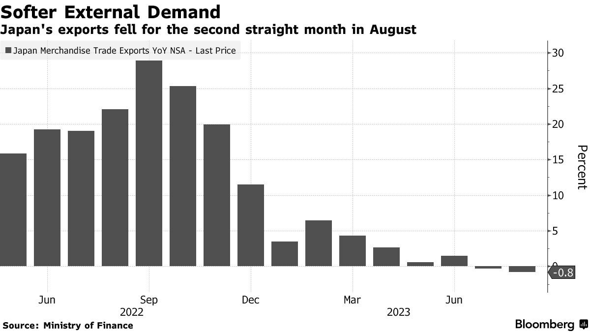 不过,这一下降幅度也表明日本国内需求明显萎缩,考虑到海外,尤其亚洲地区需求持续放缓,这对日本经济来说是一个令人担忧的问题。8月份,日本对亚洲市场的出口规模继续以两位数的速度下滑。