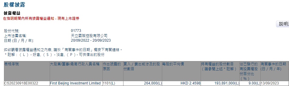 智通财经APP获悉,香港联交所最新资料显示,9月13日,First Beijing Investment