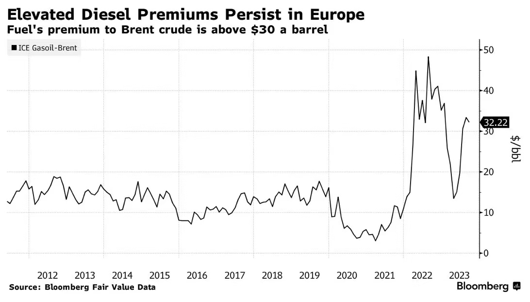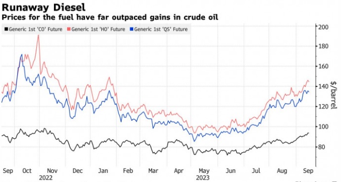而且情况可能会变得更糟。沙特和俄罗斯已经停止生产柴油含量更高的原油。9月5日,这两个国家还宣布将减产石油措施延长至年底,在这段时间里,对燃料的需求通常会回升。尽管受到西方制裁,俄罗斯仍然是世界主要的供应国,而该国表示,正在寻求限制向全球市场出口燃料的数量。